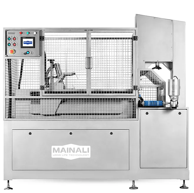 This compact machine is ideal for tight spaces and has an automatic safety system that protects the operator. Servo motor-driven movements ensure accuracy, and photocell readout reduces cycle times. iRBC can cut both frozen and fresh products such as meat, fish and vegetables. With its plug and play design, it is easy to install, safe and easy to clean.